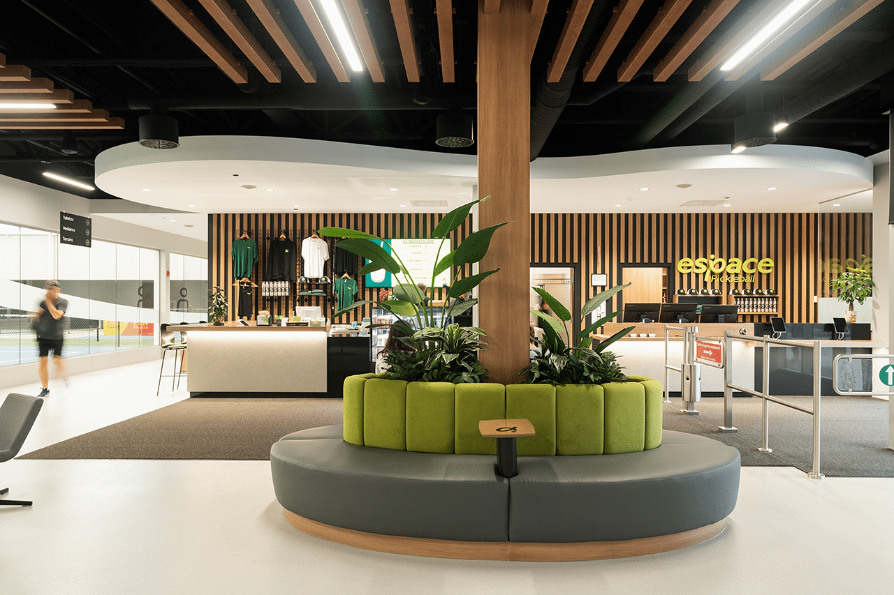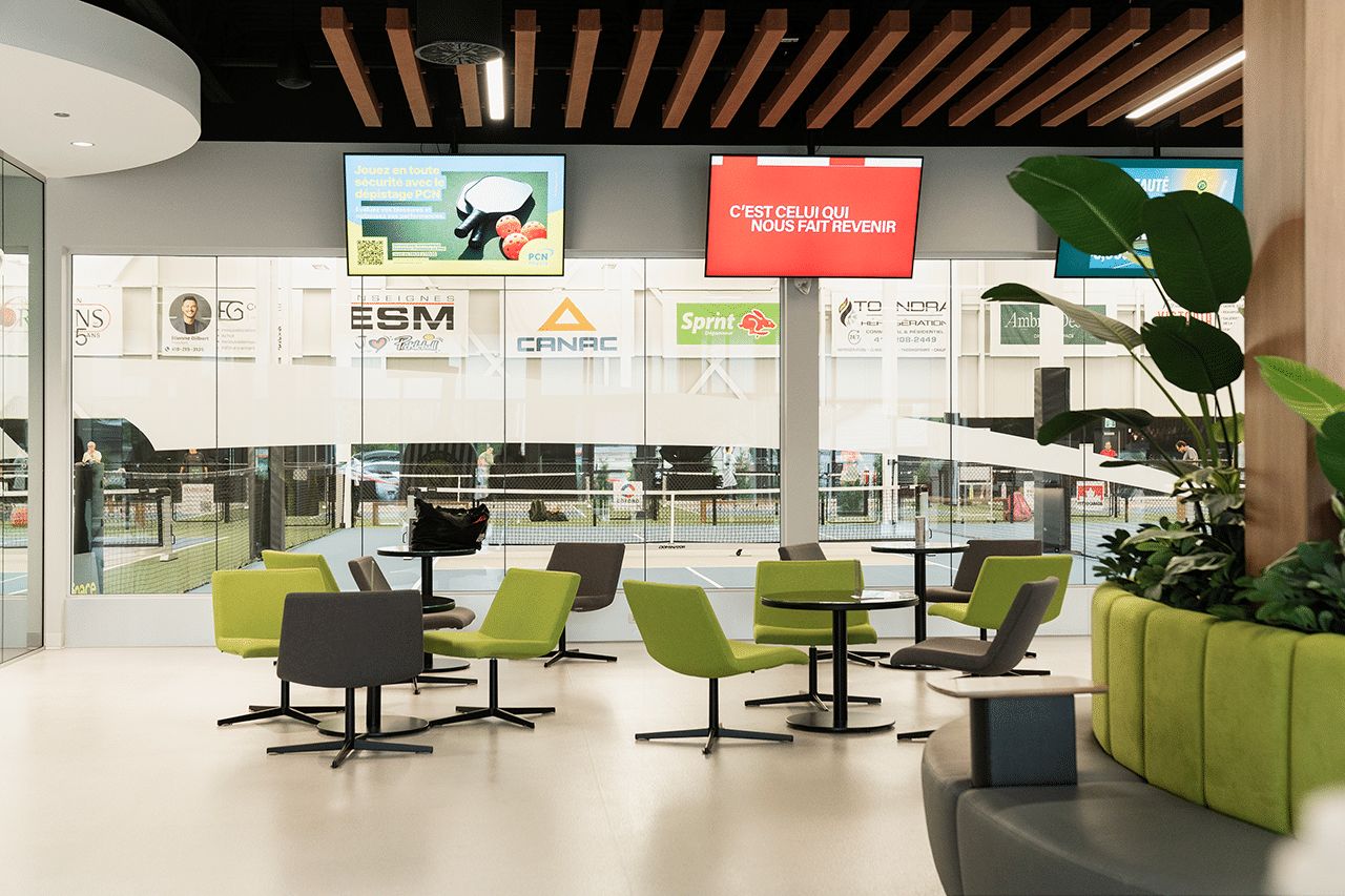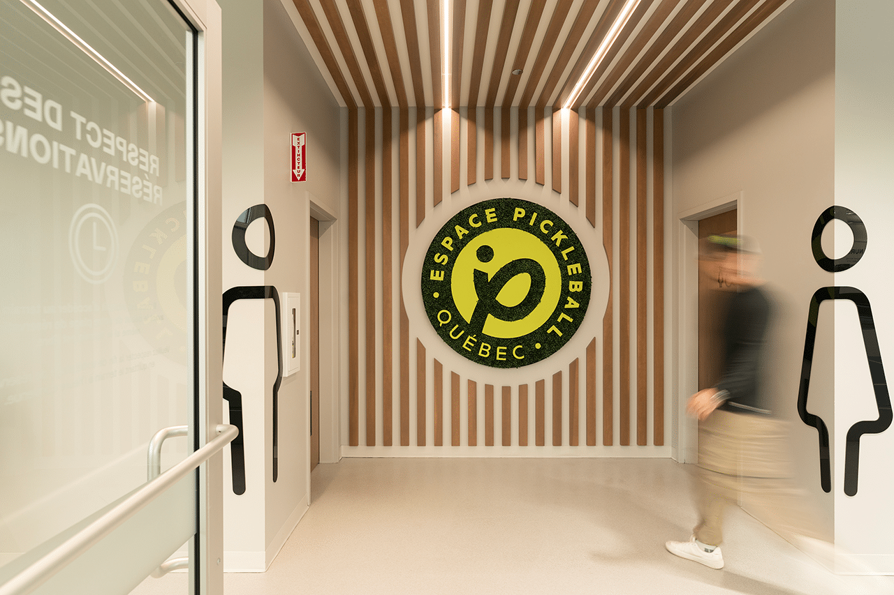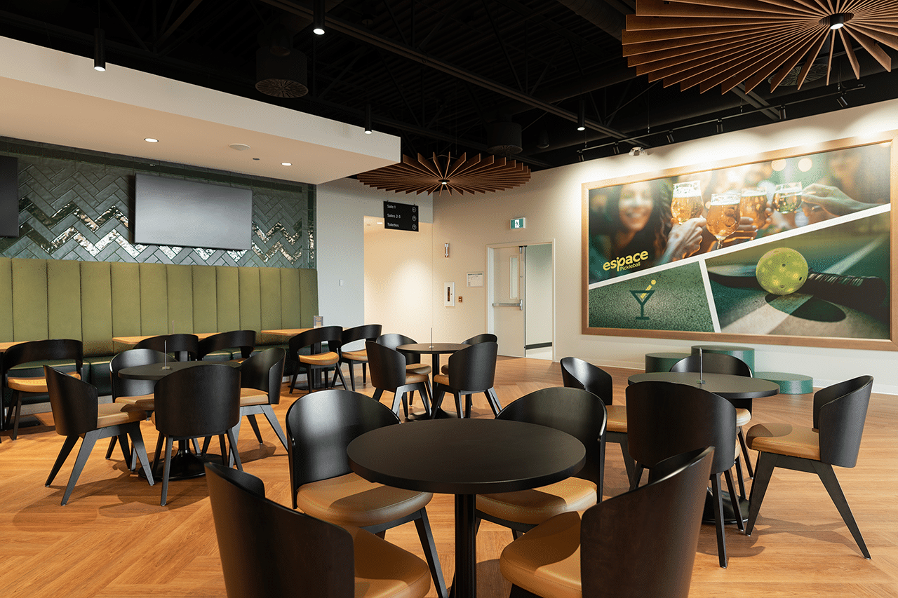 Se distinguant par son design d’exception” (Boucher, 2024, artetculture.ca), l’Espace Pickleball est devenu la destination incontournable au Québec pour les amateurs de la discipline. Plus qu’un simple lieu dédié au pickleball, l’Espace est un véritable point de rassemblement pour une communauté grandissante. Chaque détail a été soigneusement pensé pour maximiser l’expérience des joueurs : du contrôle de l’éclairage à l’acoustique, rien n’a été laissé au hasard. Dynamisme, mouvement, raffinement et esprit de communauté se traduisent dans l’architecture et l’aménagement, créant ainsi un environnement où performance et convivialité s’entremêlent harmonieusement.