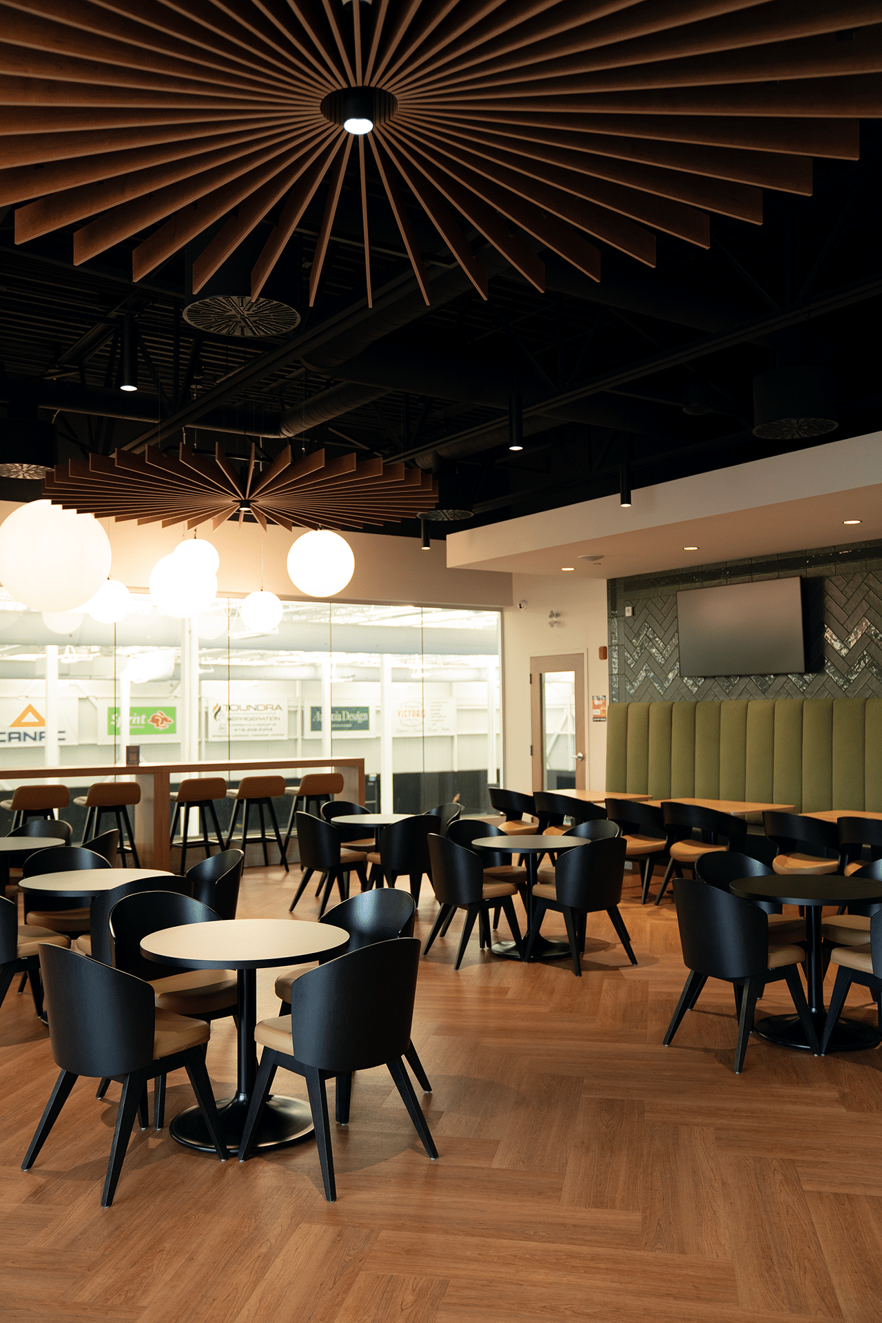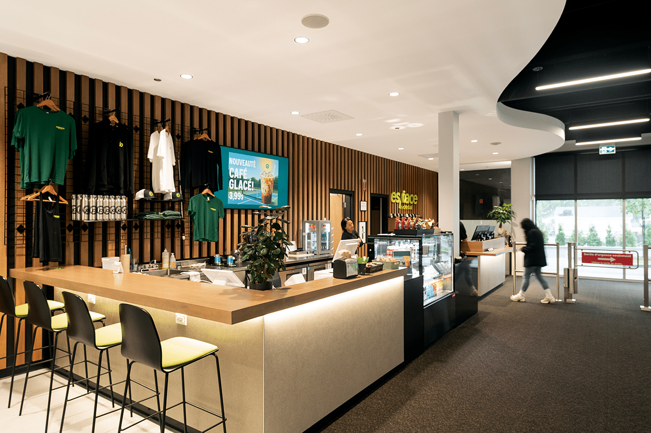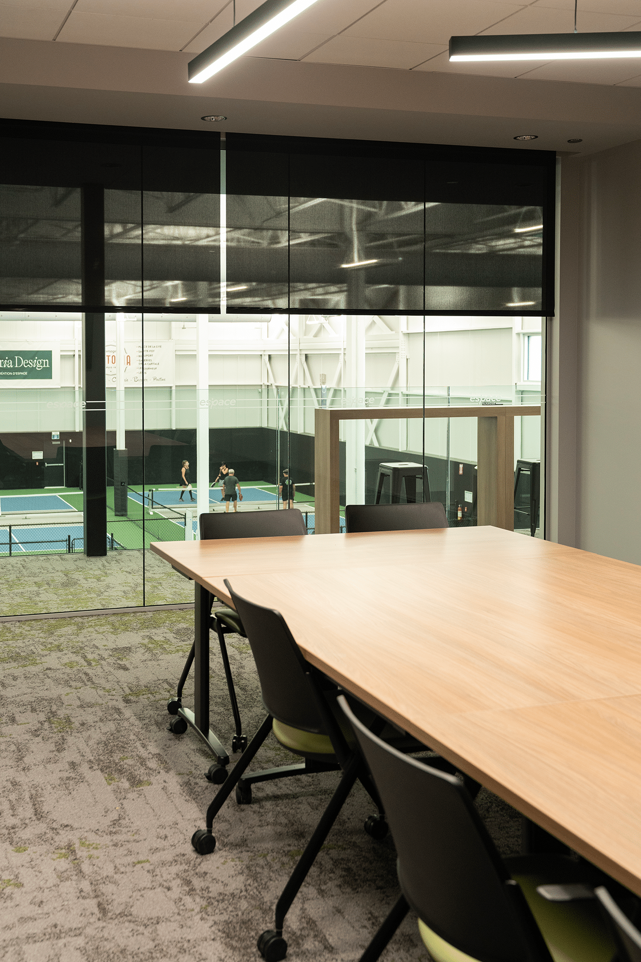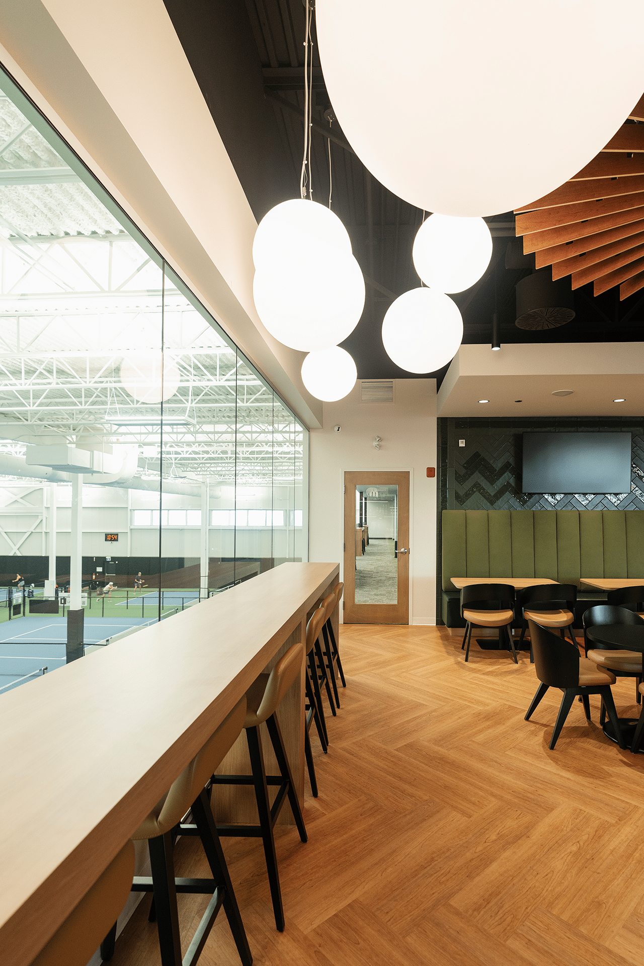 Se distinguant par son design d’exception” (Boucher, 2024, artetculture.ca), l’Espace Pickleball est devenu la destination incontournable au Québec pour les amateurs de la discipline. Plus qu’un simple lieu dédié au pickleball, l’Espace est un véritable point de rassemblement pour une communauté grandissante. Chaque détail a été soigneusement pensé pour maximiser l’expérience des joueurs : du contrôle de l’éclairage à l’acoustique, rien n’a été laissé au hasard. Dynamisme, mouvement, raffinement et esprit de communauté se traduisent dans l’architecture et l’aménagement, créant ainsi un environnement où performance et convivialité s’entremêlent harmonieusement.