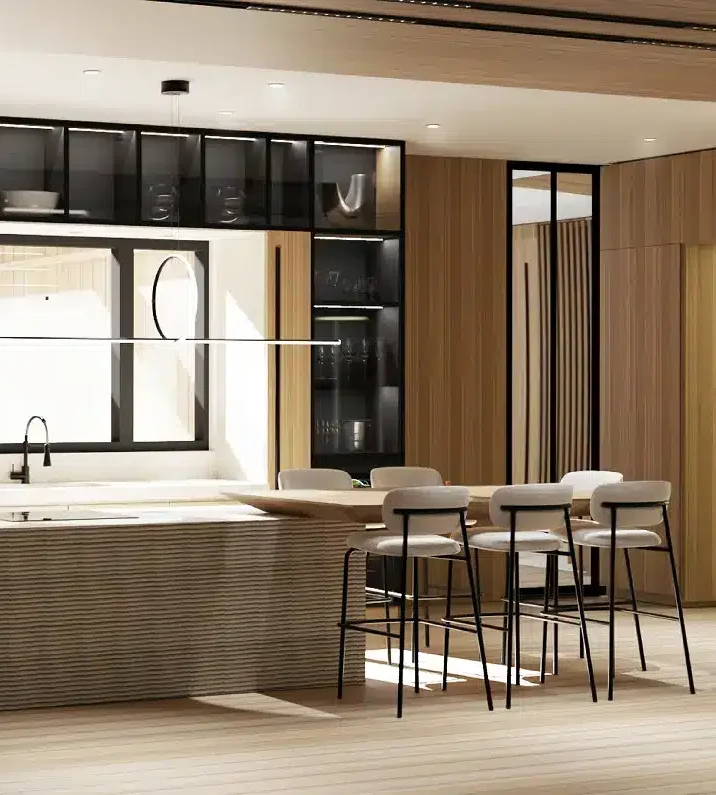 Inspirés par cette proximité intime avec le paysage, les designers ont souhaité tisser un lien sensible et fluide entre l’intérieur et l’extérieur de la maison.