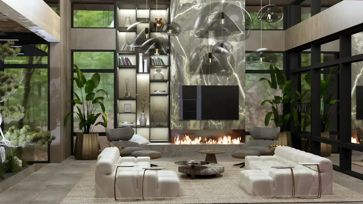 Ce dialogue s’exprime pleinement à travers une fenestration généreuse, des jeux de miroirs reflétant les paysages environnants et encore une lumière plus qu’abondante. Les trois jardins intérieurs viennent sublimer, avec délicatesse, le caractère naturel et apaisant de l’ensemble. Le choix des matériaux, la forme du mobilier et sa disposition ont tous été soigneusement réfléchis afin de révéler un design à la fois organique, cohérent et résolument fonctionnel.
