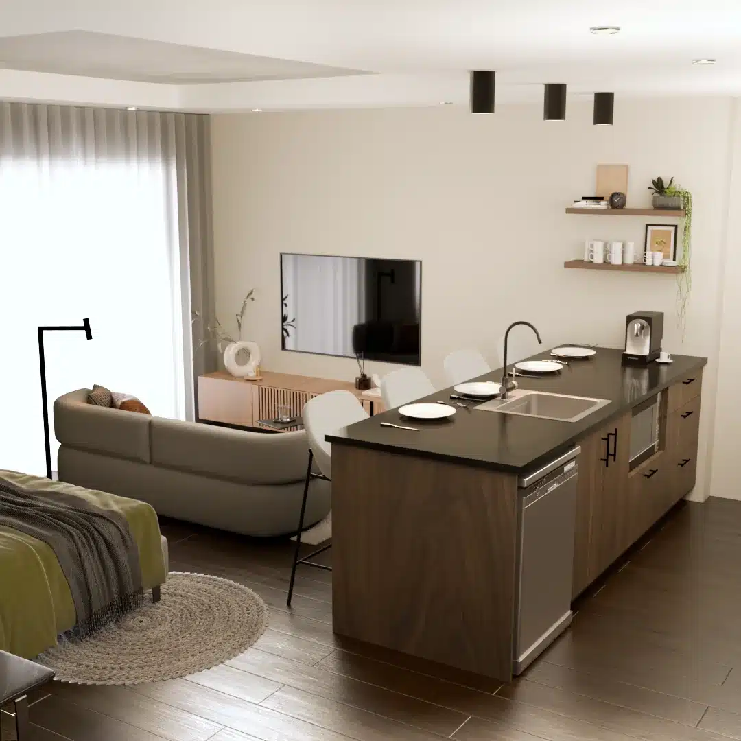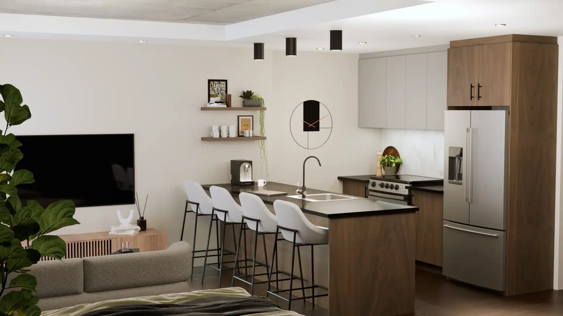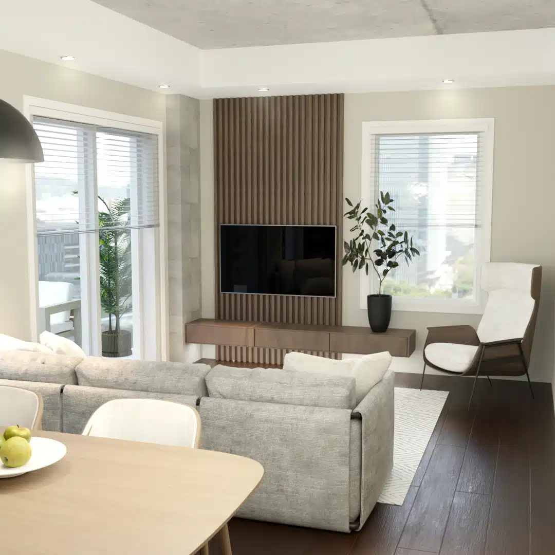 Cadet de l’heptade de Place MacKay, le Sirocco allie modernité et authenticité. Un vent de fraîcheur envahit le quartier bien établi au cœur de Sainte-Foy. La chaleur de la brique du Sirocco se révèle à travers ses murs, sublimée par ses parements de bois. Quant à elle, l’omniprésence du béton, sur les différentes surfaces de la septième tour, tempère l’ambiance. La prestance de la tour rappelle la valeur des matériaux. Le granit, le quartz ou encore les panneaux acoustiques ont tous été soigneusement sélectionnés dans le but de maximiser le confort de ses habitants. À l’image de ceux-ci, le design se veut moderne, sophistiqué et bien pensé. Douillet et feutré, tous sauront s’y plaire.